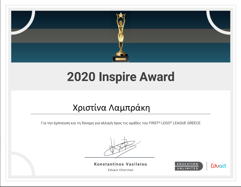 Απονομή Βραβείου Chairman's από την Υφυπουργό Παιδείας και Θρησκευμάτων Σοφία Ζαχαράκη